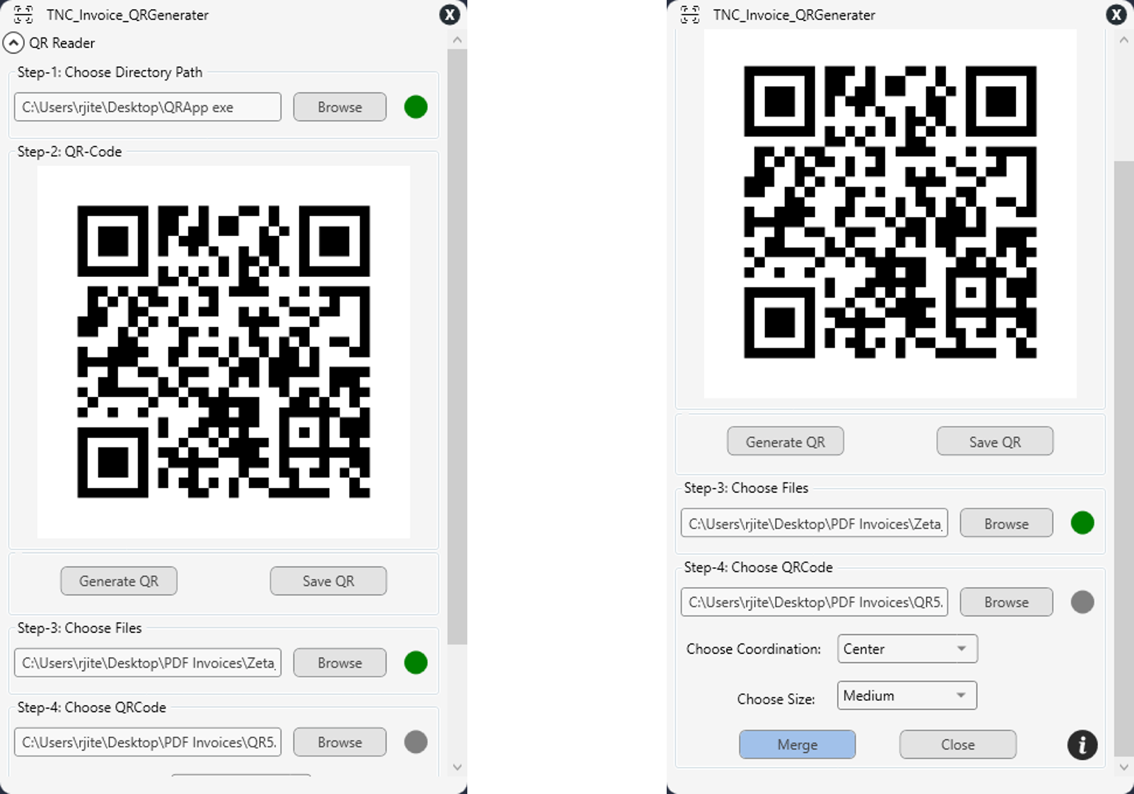 Create and merge invoice QR codes across batches.
